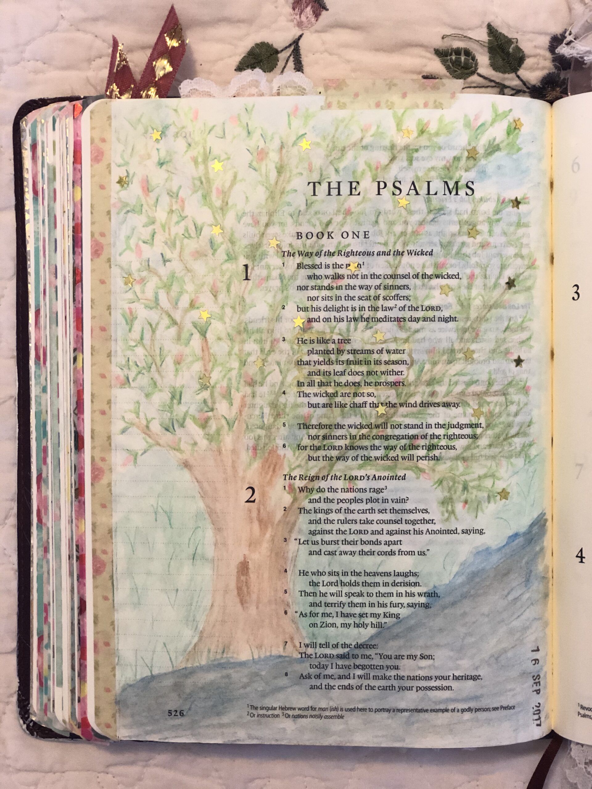A few years back I got a call from my daughter. “Mom, do you know there’s a kind of Bible you can draw and paint and do art in? It’s called a Journaling Bible. You should get one.”